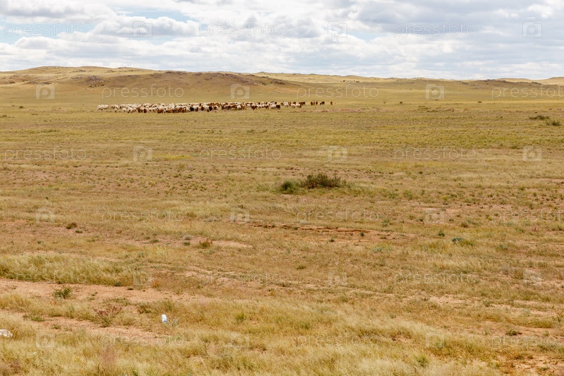 Стадо овец, пасущихся в пустыне Гоби, Монголия