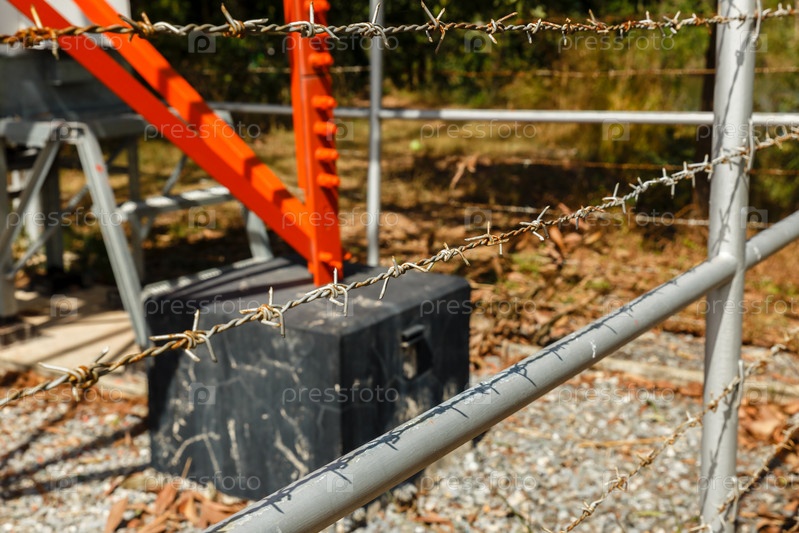Забор из колючей проволоки вокруг вышки сотовой связи