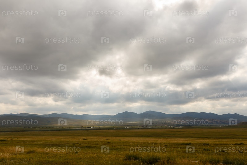 Монгольская степь, красивый ландшафт с облачным небом
