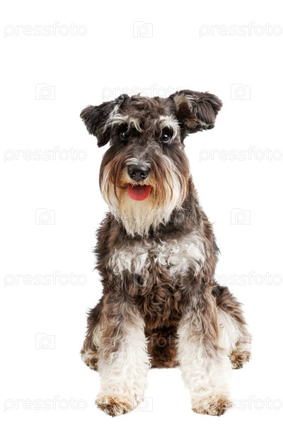 Крупным планом портрет собаки породы цвергшнауцер, изолированные на белом фоне