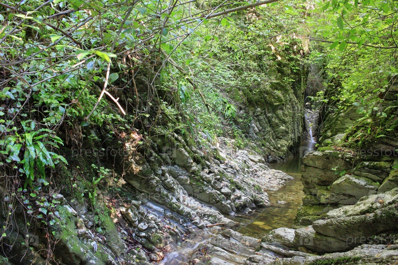 Скалы и растительность в Крабовом ущелье в Лазаревском