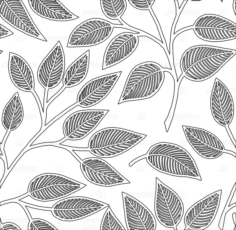 Образец, бесшовный, черно-белый, ветви, листья, шаблон, без швов, , чёрно-белый, ветки, листья