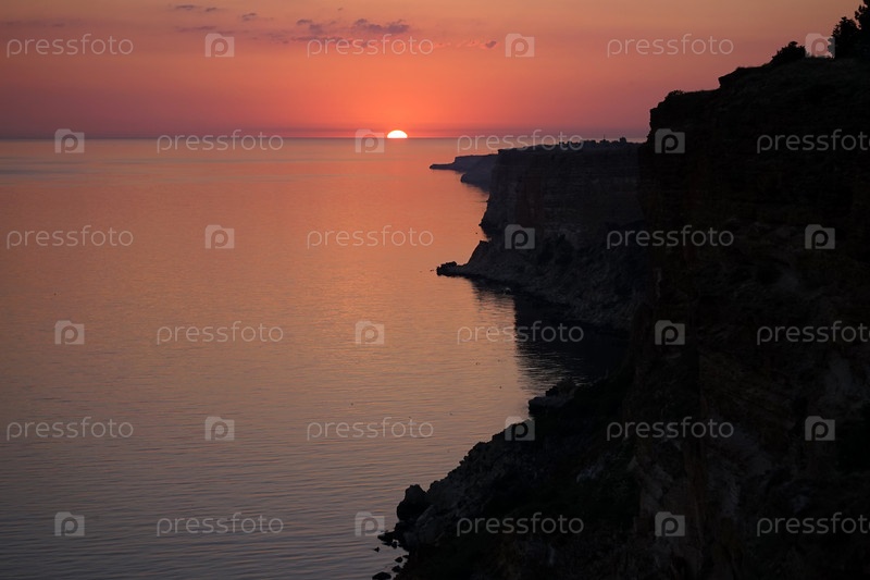 Красивый малиновый закат над мысом Фиолент, Севастополь
