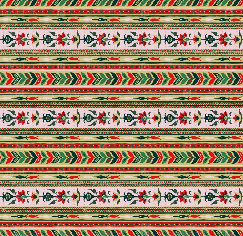 Геометрический фольклорный орнамент икат. Племенная этническая векторная текстура. Бесшовный полосатый узор в стиле ацтеков. Рисунок племенной вышивки. Индийский, скандинавский, цыганский, мексиканский, народный узор