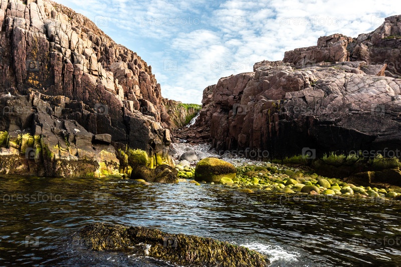 Водопад на побережье Баренцева моря, Северный Ледовитый океан, Кольский полуостров, Россия