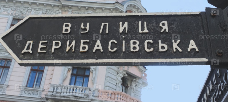 Старая черная вывеска с названием улицы Дерибасовской. Дерибасовская — самая известная улица Одессы