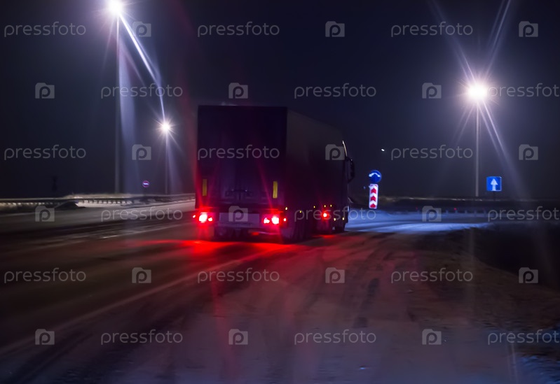 Грузовик движется по зимнику