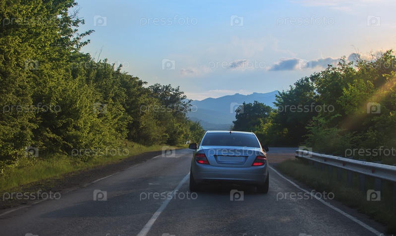 Машина движется по дороге в горах