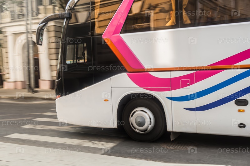 Туристический автобус движется по улице