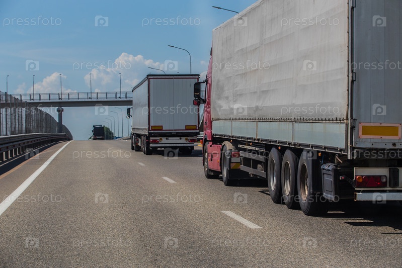 Грузовики доставляют груз в противоположных направлениях по пригородной трассе