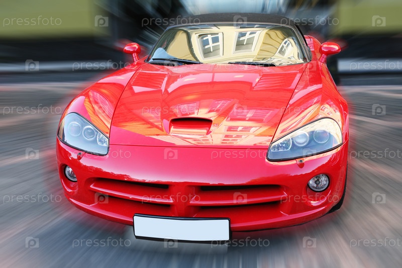 Спортивный красный автомобиль движется