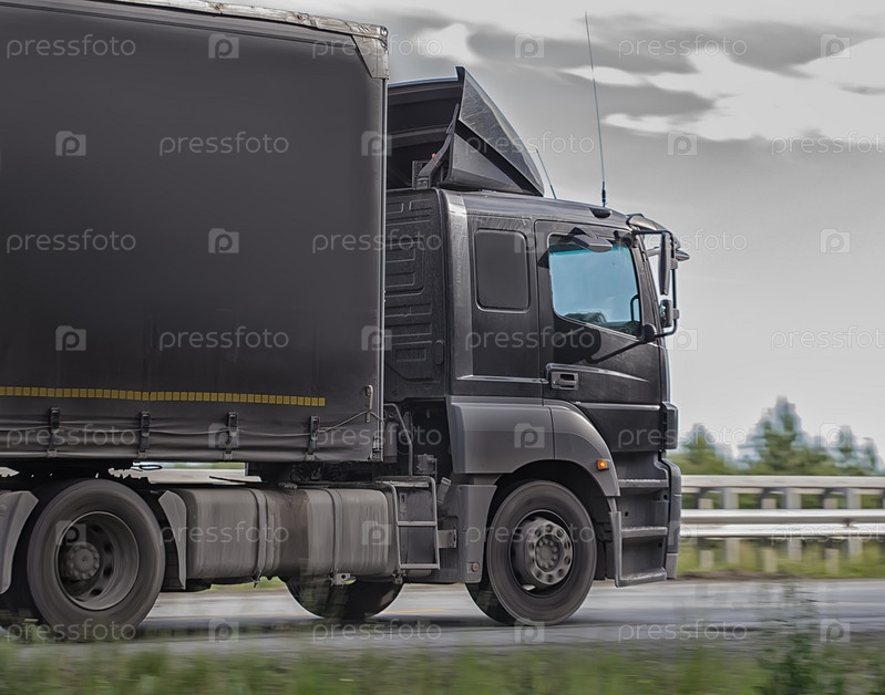 Грузовик перевозит груз по шоссе