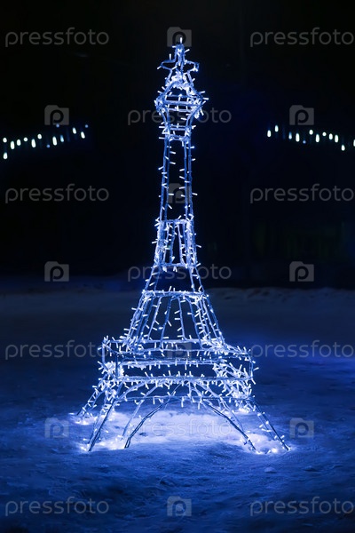 Копия Эйфелевой башни, украшенная гирляндой