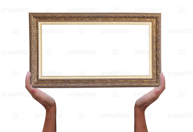 Рамка для картины в женских руках, изолированная на белом