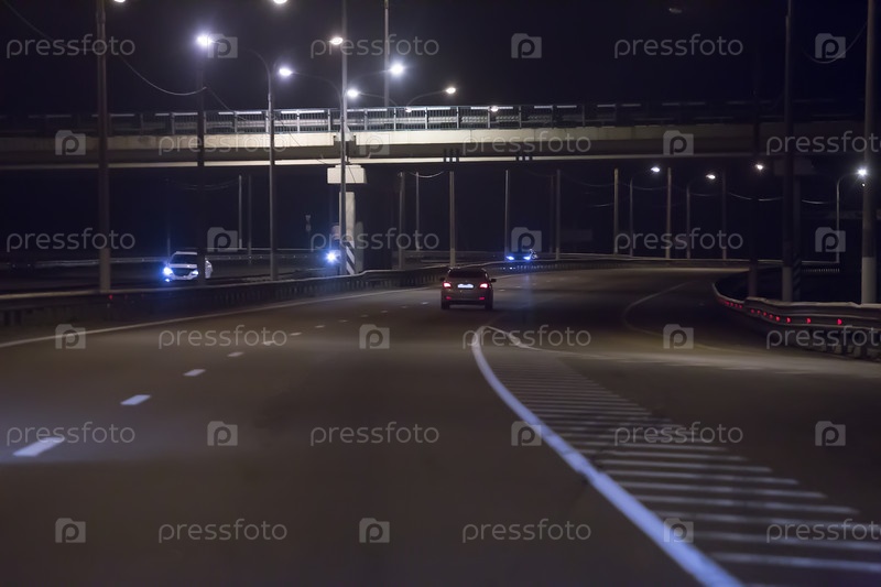 Транспортная развязка, освещенная уличными фонарями ночью