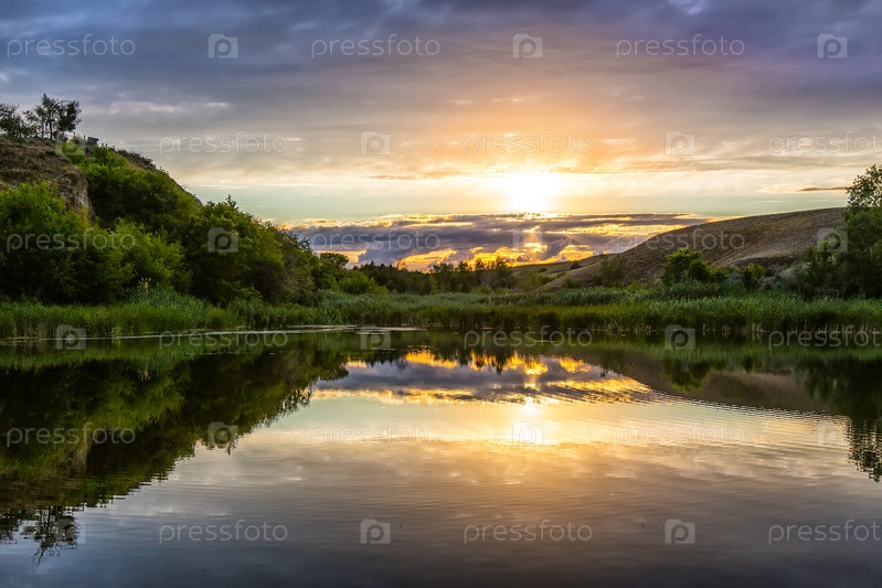 Закат на реке Волга Россия