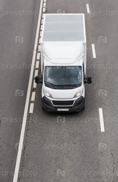 Грузовик движется по многополосному шоссе