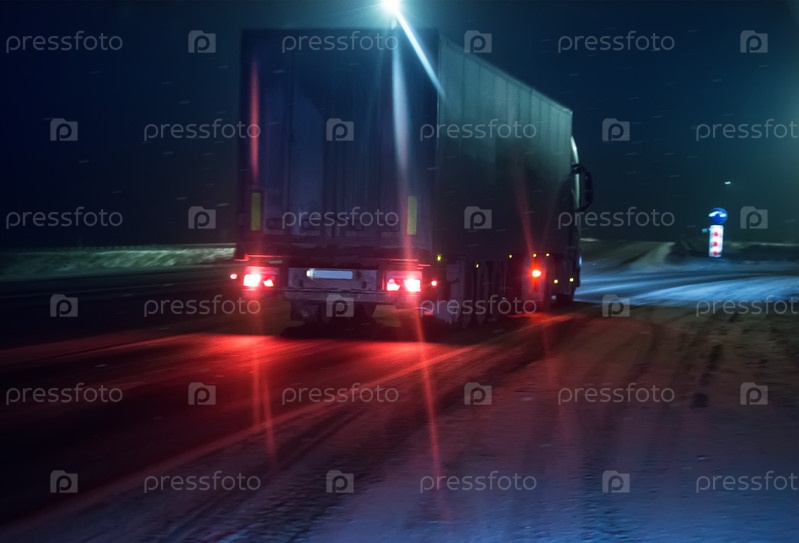 Грузовик движется по зимнику