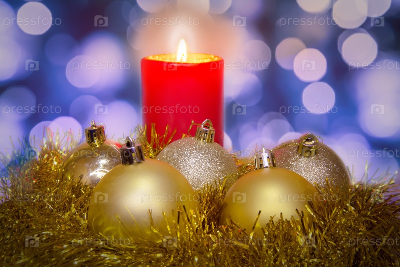 Рождественские шары и горящая свеча
