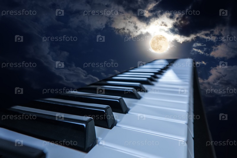 Клавиши пианино в лунном свете