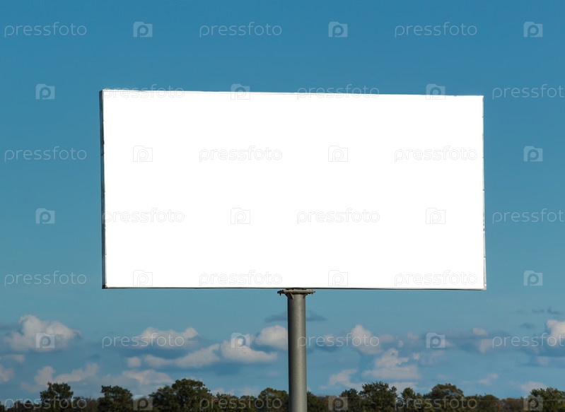 Большой белый рекламный щит на фоне неба