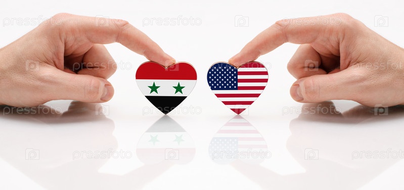 Концепция дружбы и дипломатических отношений между Сирией и США. Флаг Сирии и США как символ сотрудничества и уважения