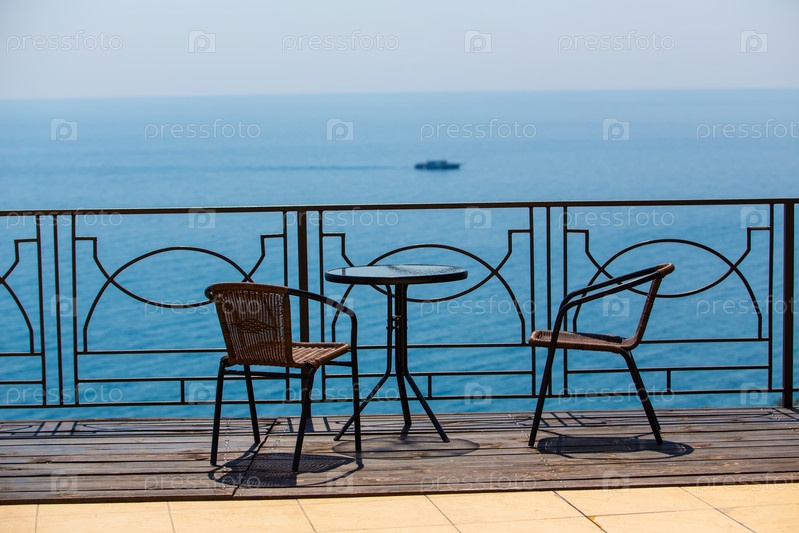 Стулья и стол на террасе у моря