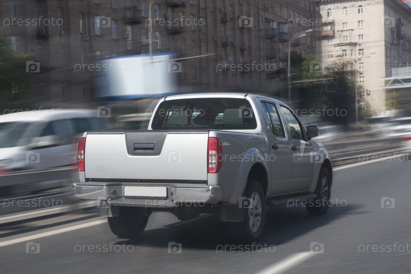 Пикап едет по трассе