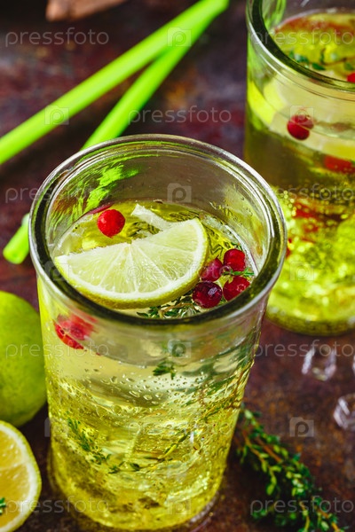Лаймовый лимонад с тимьяном, клюквой и льдом