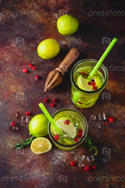 Лаймовый лимонад с тимьяном, клюквой и льдом