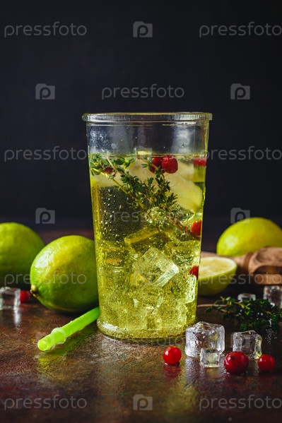 Лаймовый лимонад с тимьяном, клюквой и льдом