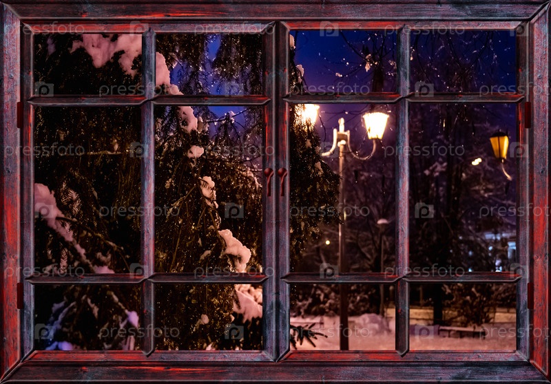 Замерзший вид из окна в ночь перед рождеством