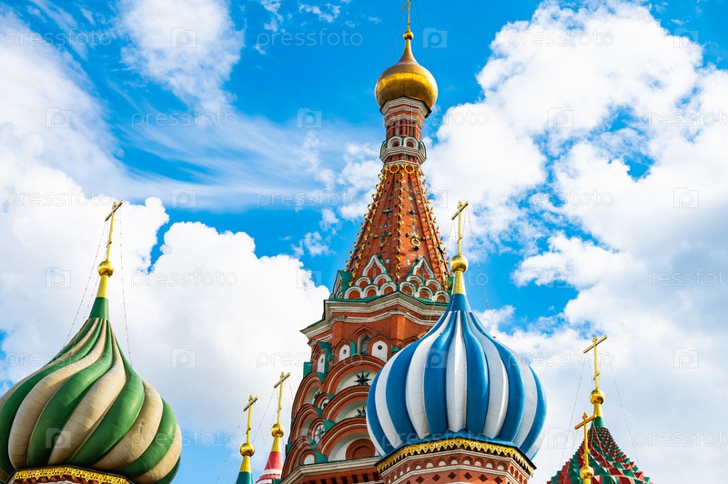 Московский храм на красной площади на фоне голубого неба