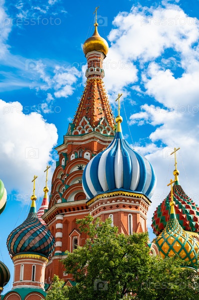 Московский храм на красной площади на фоне голубого неба
