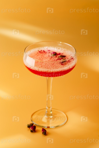 Коктейль из розовой малины в стакане для напитков