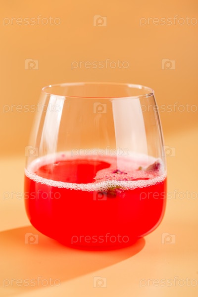 Коктейль из розовой малины в стакане для напитков