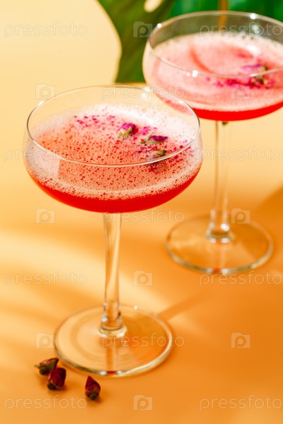 Коктейль из розовой малины в стакане для напитков