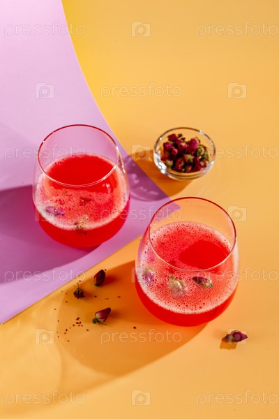 Коктейль из розовой малины в стакане для напитков