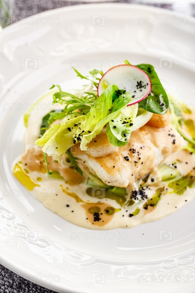 Спинка трески с гребешком и сельдереем