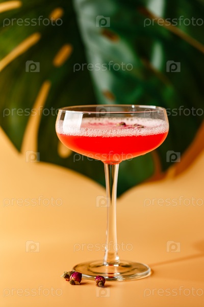 Коктейль из розовой малины в стакане для напитков