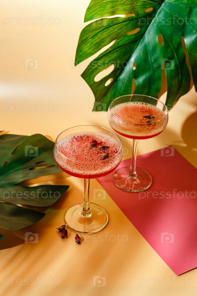 Коктейль из розовой малины в стакане для напитков