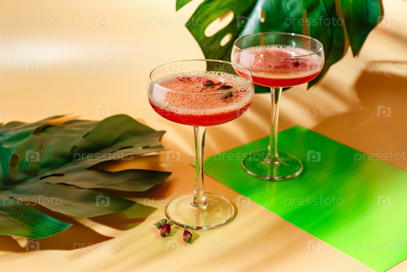 Коктейль из розовой малины в стакане для напитков