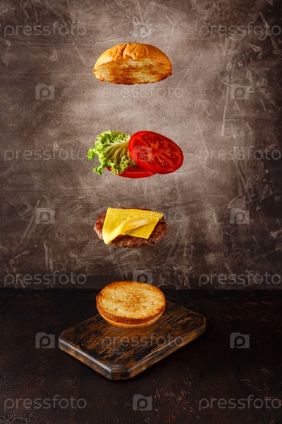 Вкусный бургер с плавающими ингредиентами