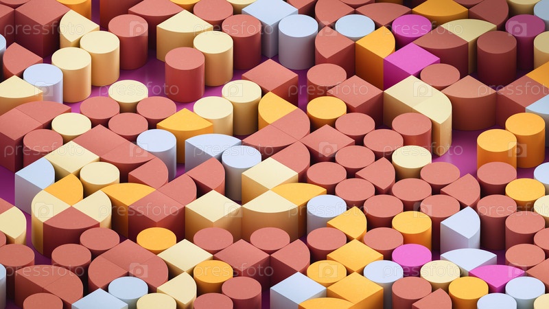 Изометрический вид. Баухаусский стиль. Абстрактный трехмерный орнамент из трёхмерных геометрических форм. Шаблон для фона или дизайна обоев. 3d визуализация