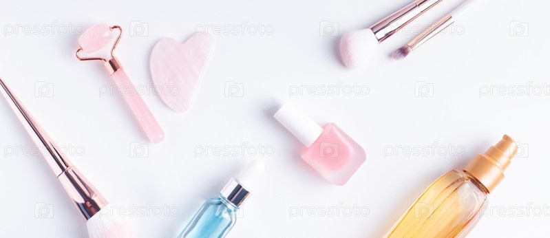 Товары для ухода за собой и красоты на белом фоне