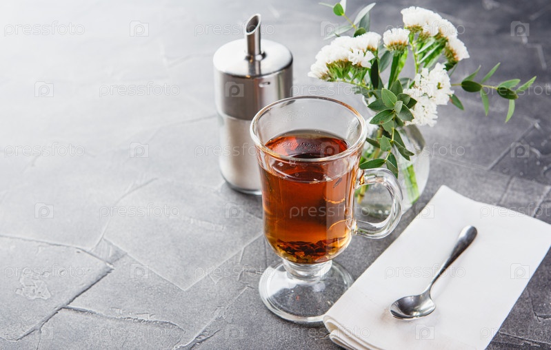 Стеклянная чашка черного чая, чайная церемония