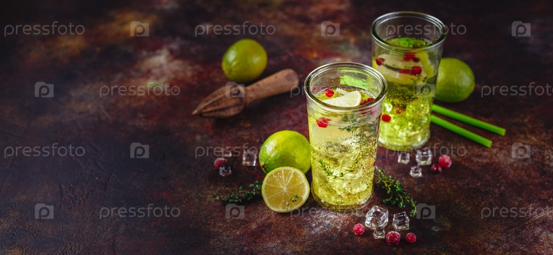 Лаймовый лимонад с тимьяном, клюквой и льдом