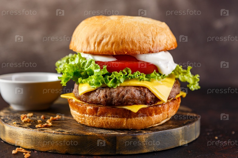 Крупный план домашнего вкусного гамбургера на деревянном столе