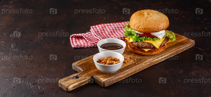 Крупный план домашнего вкусного гамбургера на деревянном столе