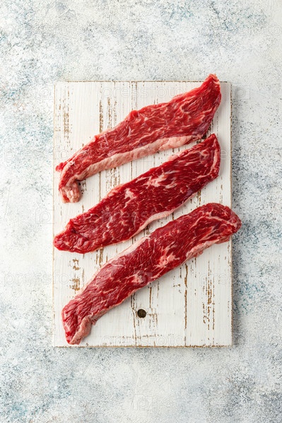 Сырой стейк со специями на деревянной разделочной доске